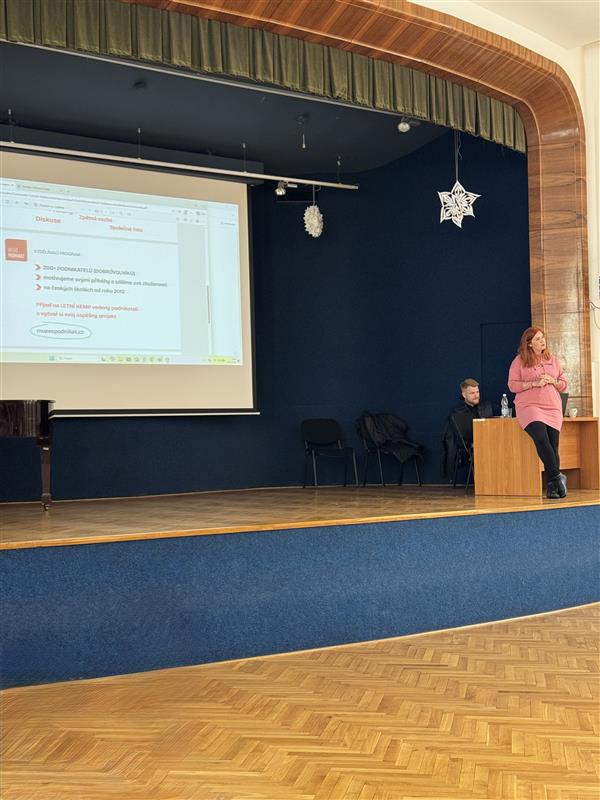 V únoru nás opět navštívili úspěšní podnikatelé z projektu Můžeš podnikat. Tentokrát byla přednáška zaměřena pro žáky druhých ročníků obchodní akademie a ekonomického lycea. Podnikání je jedno ze stěžejních témat, kterému se žáci věnují v hodinách ekonomiky, a díky přednášce se mohli zamyslet nad podnikáním více z praktického hlediska než „jen“ z toho teoretického. Věříme, že příběhy podnikatelů byly pro žáky velmi inspirativní.